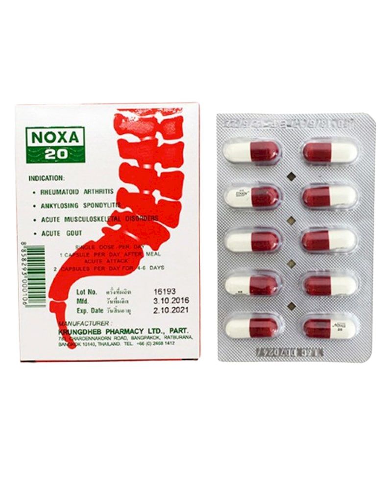 Noxa 20 Thái Lan là thuốc đặc trị viêm khớp được nhiều người tin dùng nhất hiện nay. Đây là loại thuốc được sản xuất bởi Krungdheb Pharmacy LTD., Part, Thái Lan.