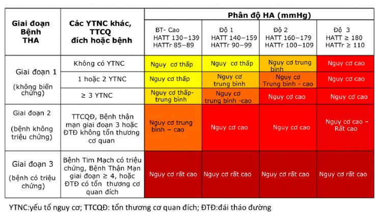 Nguy cơ bệnh tim mạch theo từng cấp độ tăng huyết áp
