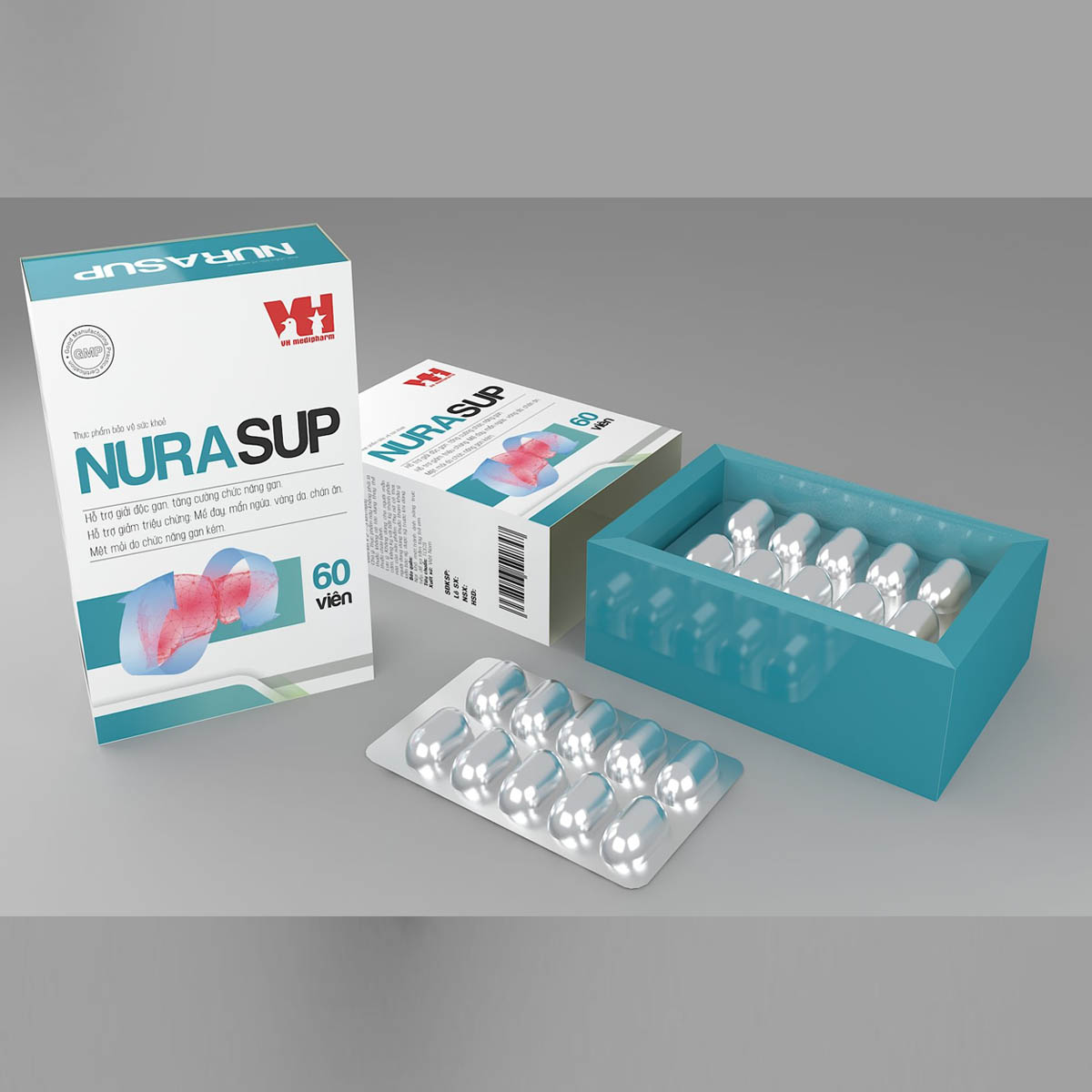 Thực phẩm bảo vệ sức khỏe NURASUP - Hỗ trợ thanh nhiệt, bảo vệ gan, giải độc gan. Hỗ trợ giảm triệu chứng mề đay, mẩn ngứa, vàng da, chán ăn do chức năng gan kém. Đối tượng sử dụng: Người lớn chức năng gan kém. Người lớn uống rượu bia, thuốc có hại cho gan.