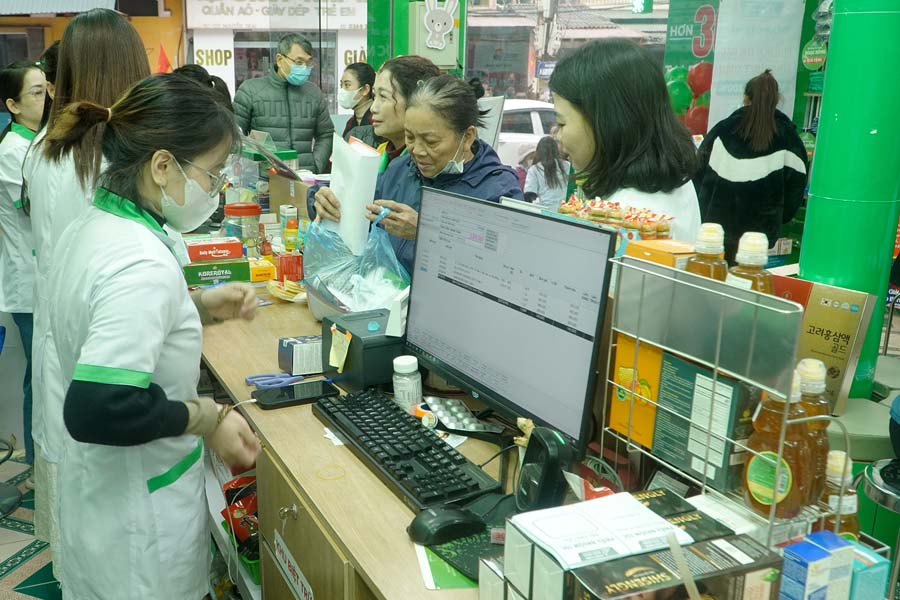 Các dược sĩ đang tư vấn thuốc cho bệnh nhân sau khi được thăm khám